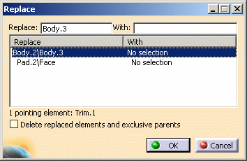 For more information about Replace... command, refer to About Replacing Features. |