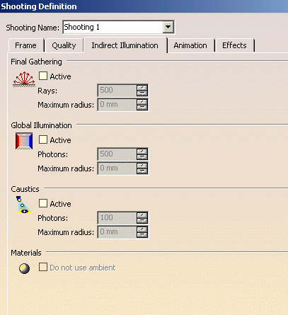 to define the shooting parameters in the Indirect Illumination