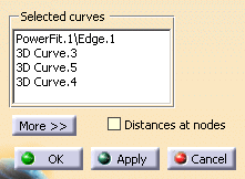 The list of the selected curves or edges is displayed in the Selected