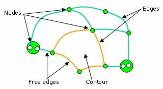 - An edge belongs to one contour (free border edge) or 2 contours