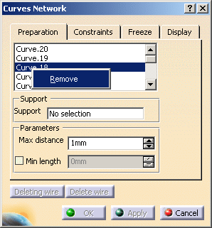 tab and select the curves to clean. They are displayed in the dialog box.