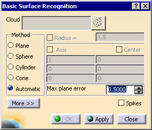 The Basic Surface Recognition dialog box is displayed.