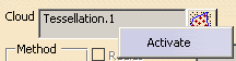 contextual menu Activate of Cloud: