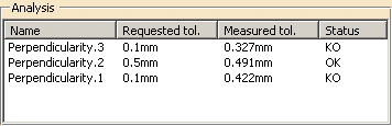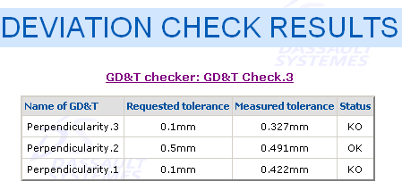 - An OK/KO status for each tolerance in the dialog box.