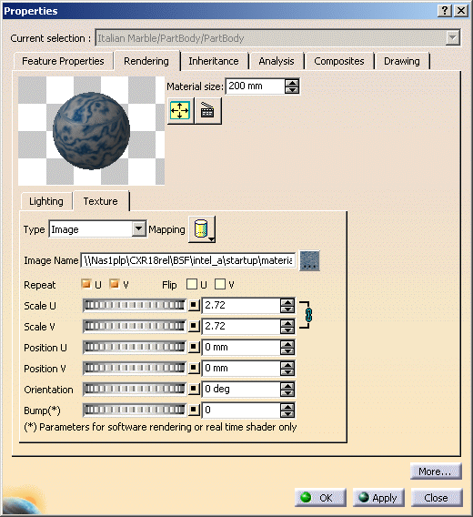 Texture tab in the Properties dialog box:
