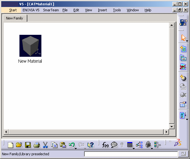 By default a new family and a new material are in the document, ready to be renamed and edited. The background color of the Material Library Editor is white and cannot be changed using settings.