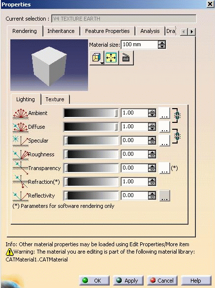 This task shows you how to convert a V4 2D texture to a V5 material. | |||||||||||||