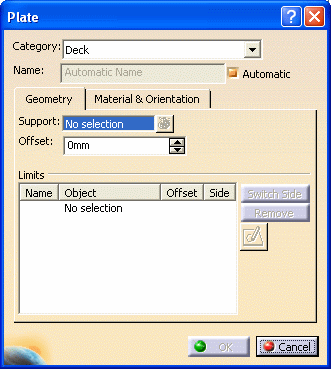 plate. To limit the plate, click under Limits, and select the object you want to use to indicate the limit. The plate is trimmed, and the selected object displays under Object.
