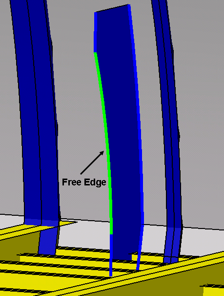 | 5. | Click the button next to the Edge field to display the Elements List. You can use the list to delete or replace stiffeners that you have added. To replace, select the free edge, click the Replace button, then select the new free edge. | |||||