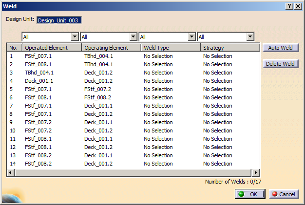 Check the text file assigned in StrWeldPreparationSample resource to refer combinations of