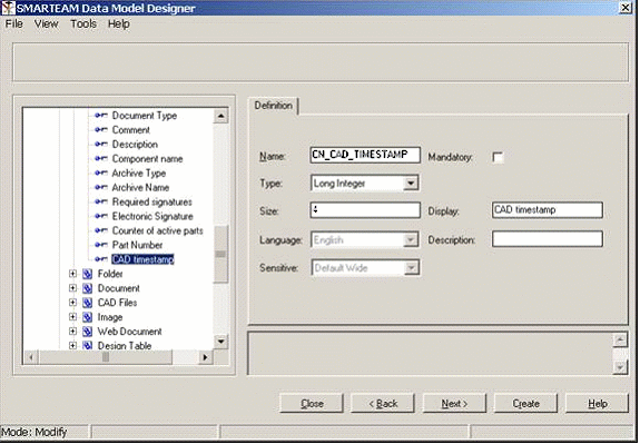 For reference information about SmarTeam Data Model Designer, see the SmarTeam-Editor documentation. |