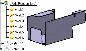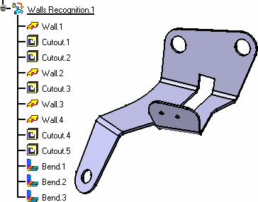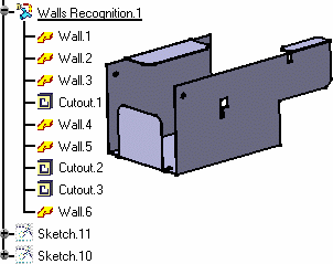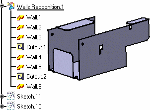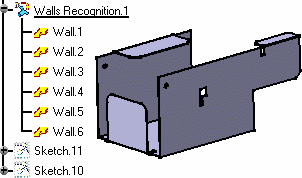 This task shows how to create a SheetMetal part based on an existing part, that is recognizing the thin part shapes of the part as created using the Part Design workbench or from a CATIA Version 4 Solid for example. | |