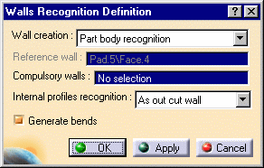 The Generate Bends check button allows the automatic creation of bends as the walls are being created, wherever applicable. |