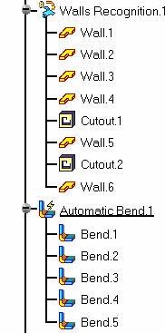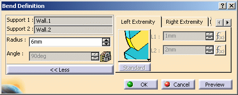 This task explains how to automatically generate bends between walls in the Sheet Metal part. You can first create all the bends, then modify the parameters for any of the generated bends. | |