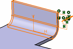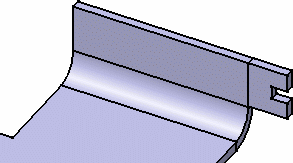 This task shows how to create a wall tangent to a planar part of another wall or of a flange. This capability will then allow this tangent wall to be seen when unfolding the part, even though there is no bend linking it to its tangent support, provided this support is unfoldable too. |