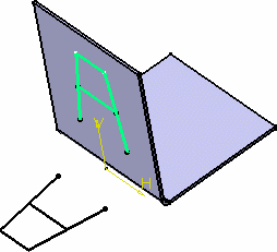 The Mapping Context is not necessarily the support element on which the element to be mapped has been drawn. Indeed, by default, the Mapping Context is the last Sheet Metal feature that has been created or modified, that is the current feature in the specification tree. | |