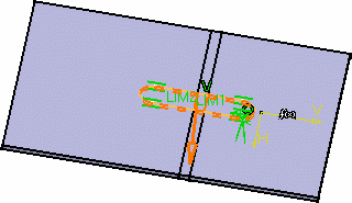 When an Offset value is required, it is the distance between the limiting element and the top face of the cutout, if the latter does not result in a complete hole through the material. The LIM1 and LIM2 texts in the geometry area indicate the top and bottom limits of the cutout. |