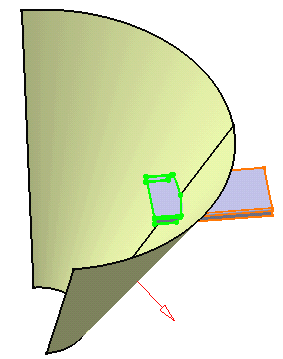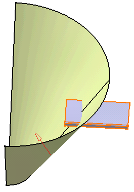 This task shows how to create a split normal to a sheet metal part by means of a cutting surface. |