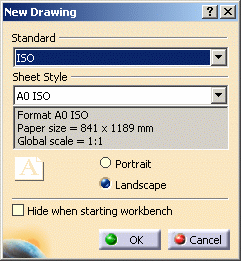 workbench is launched. The New Drawing dialog box opens. |
