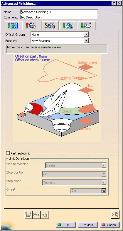 Advanced Finishing is dedicated to machining grooves in one shot: the vertical area will be machined with ZLevel passes while the horizontal