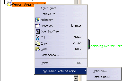 The rework area is created and can be seen in the Machining feature