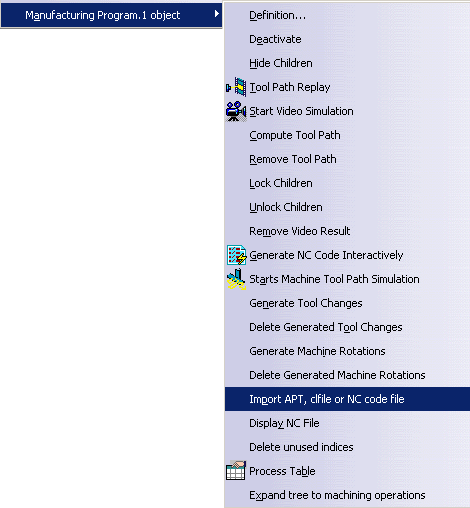 clfile or NC code file in the contextual menu.