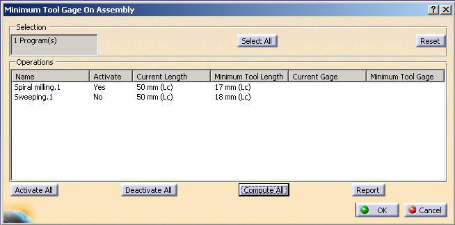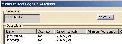 If you reopen the Minimum Tool Gage on Assembly dialog box, the