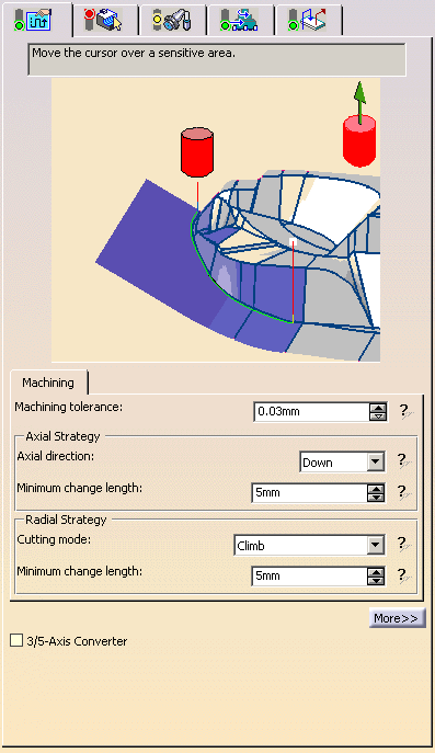 Specifies the position of the tool regarding the surface to be machined.