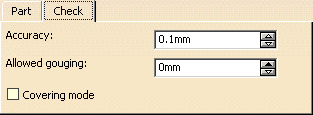 The parameters involved for check elements (such as fixtures) are: Check (or Fixture) Accuracy: Allowed gouging: maximum cutter interference with the fixture