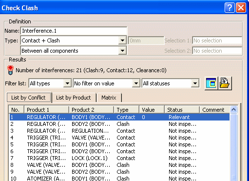 Contact + Clash checks whether two products occupy