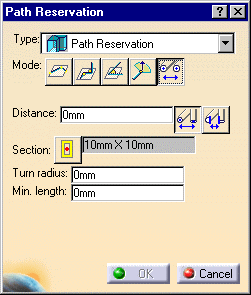 | 3. | Enter the distance between the two path reservations. If you enter 0 and click the clearance button, the two path reservations will touch at the edges. | |