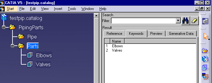 illustration below shows the Catalog Editor. The column to the left is