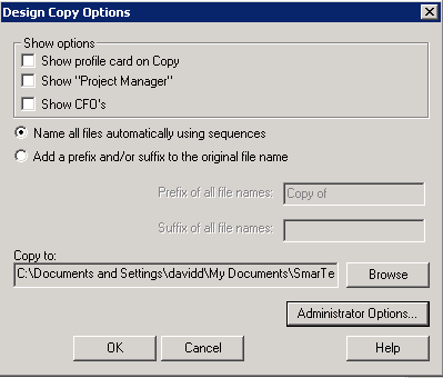 The Design Copy Options window appears.