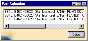 number for the Part Type you selected the Part Selection box will display.