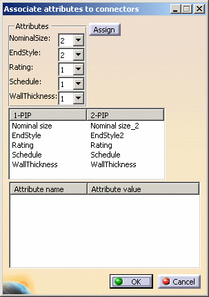 "Associating attributes" means assigning specific attributes to connectors. If a value has been assigned to the attribute then it is also associated with the connector. When you build a part, it inherits all the attributes that you have assigned to the sub-class to which it belongs (this is done in the Feature Dictionary). Values are assigned to these attributes using the Edit - Properties function. Now you need to associate some of these attributes to connectors, to help in the designing process. If you assign a certain end style to a connector, for instance, the part placement function will know what kinds of parts are compatible with the end style assigned to that connector and filter accordingly. A piping part is used here as an example. The process is the same for other types of parts too. | |