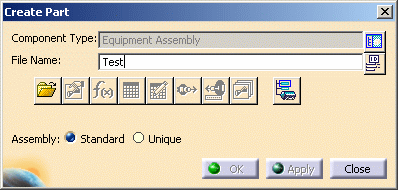 example below a pump, nozzles and pipe will make up the assembly. When you are placing the parts, you should note that the catalog may display parts that are already part of an assembly. You cannot place these individually, because they are part of an assembly. In the sample catalog provided with this application they are identified by the letters EQA, as seen in the image below. The letter 'S' after EQA means it is part of a standard assembly. The letter 'U' means it is unique. How they are identified depends on your own naming convention.