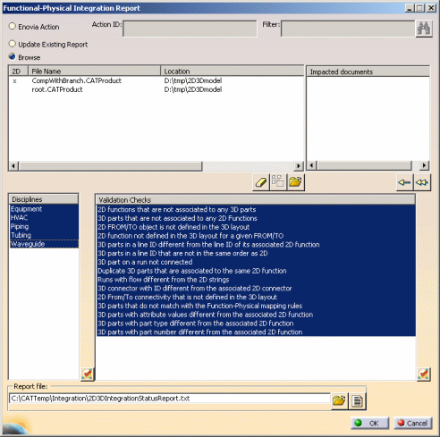 Report. The Functional-Physical Integration Report dialog