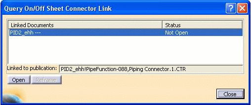 The connector highlights, and the Query On/Off Sheet Connector Link dialog box displays.