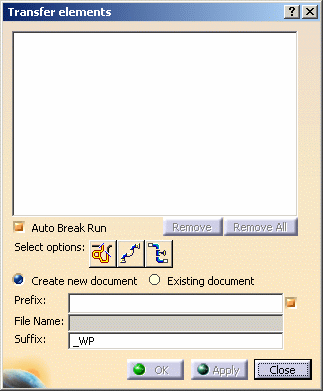 This task shows you how to transfer elements to a new document. You can use this function to transfer elements to documents or work packages that are under the same Product. See also Transfer Run to Another Document. | |
