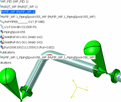 The image below shows a new document (PipingSpool-056) has been created and the spool transferred to it.
