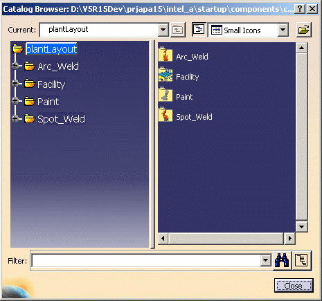 You need to specify the location of a catalog to access it. You can then place parts from this catalog into a CATProduct drawing. See also Detecting Clash in Parts Placement. |