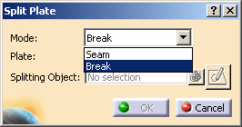 NOTE: When you change modes (Seam< > Break), the objects to be split are the same for each mode. But the splitting objects are different (a separate list exists for each mode). |