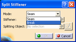 The default Mode is Seam. Select Break from the drop down list. You are prompted to select an object to be split.