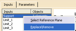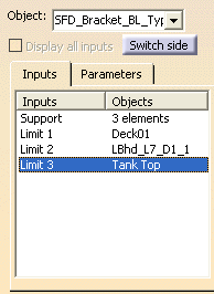 You can change Objects for the Inputs by selecting the limit, and then making another selection in the 3-D session. When you specify the Objects for each input, you will see tags indicating selected Objects, in the 3-D session.