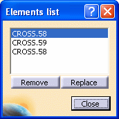 You can replace a plane on the list with another plane. Select the planes/elements you want to replace and click the Replace button. Select a plane in the 3-D session, and this plane displays on the Elements List in place of the original plane. You can also remove planes from the list. Select the planes/elements you want to remove, and click the Remove button. The selected planes are removed from the Elements List. Click Close when you have made all the necessary changes. |