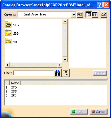 Double-click the appropriate application and a list of available small assemblies display.