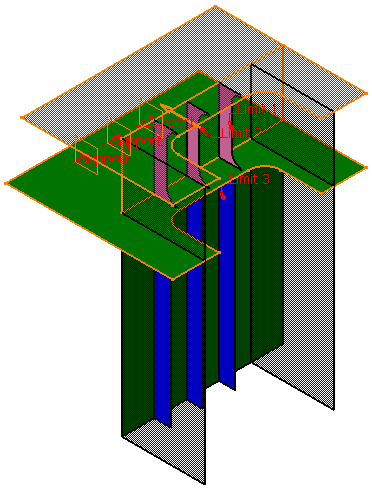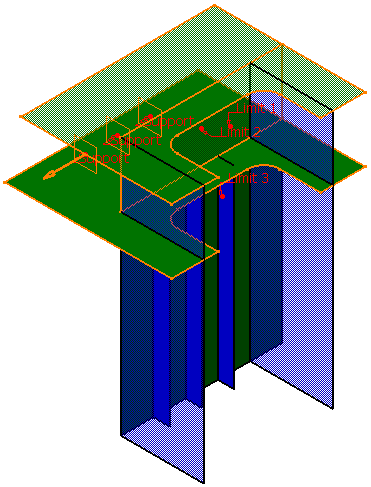 If the orientation for the specified limits is not the one desired, you can reverse the orientation by using manipulators. Manipulator appears for specified Objects when you select either the tags in 3 - D session or the Objects in the inputs list in the dialog box. The Switch Side button can also be used to switch orientation.