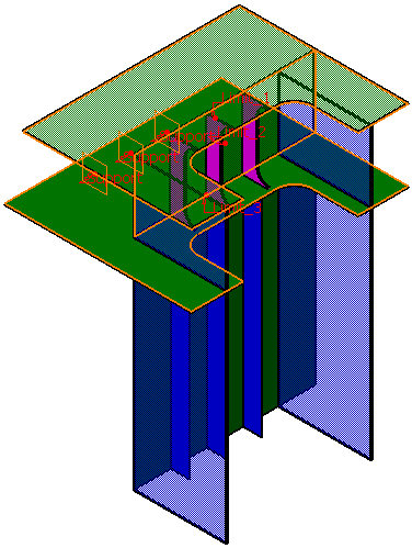 | 5. | Clicking OK in the Small Assemblies dialog box places the brackets as shown. (See below.) | |
