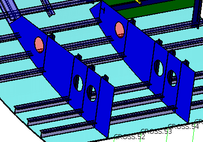 By selecting Copy, selecting a plane in the 3-D session, and then selecting Paste, a copy of the original plate with the stiffeners and openings is placed on the selected support plane.