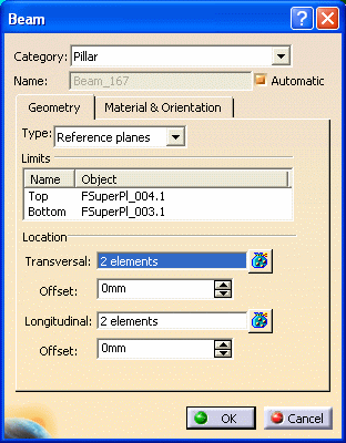 The Beam dialog box displays. Change the values as required. Some fields are not available, and cannot be changed (such as Category). |